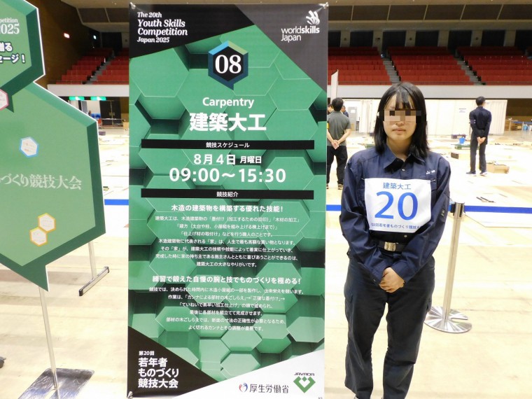 8月4日に香川県高松市で開催された第20回若年者ものづくり競技大会の建築大工職種に、上越テクノスクール木造建築科の訓練生1名が出場しました。