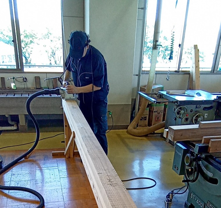 今週は、電動工具である電気かんなの取扱い方と削り作業を行いました。