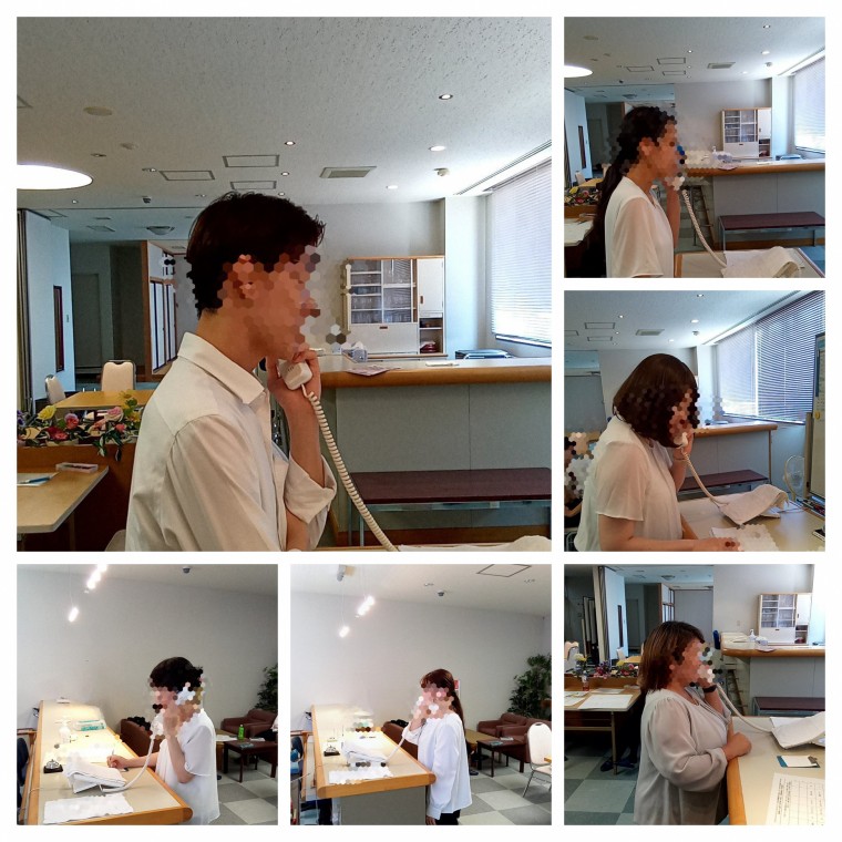 訓練ではのスクリプトを作成し、発声練習、応対演習などを繰り返し行うことで電話応対の技術向上に向けて訓練生全員で臨みました。