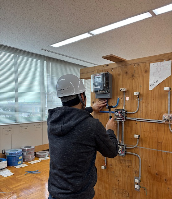 昨日、第二種電気工事士実技試験が終了し、本日からは、実習所で屋内配線作業を開始しました。