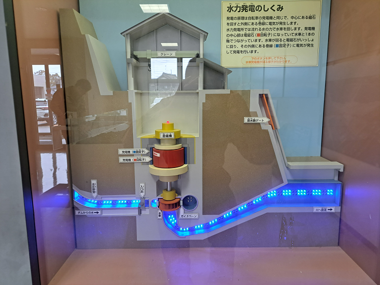 大型の機器が並び、それぞれの役目をこなしながら水力発電設備を運用していました。