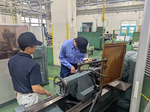 県内工業高校の先生方を対象に、「高校生ものづくりコンテスト(旋盤作業)」の指導技術講習会を行いました。