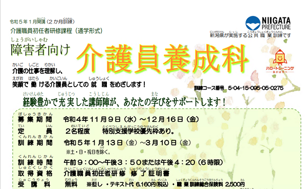 魚沼テクノスクール > 障害者向け介護員養成科【募集期間終了】