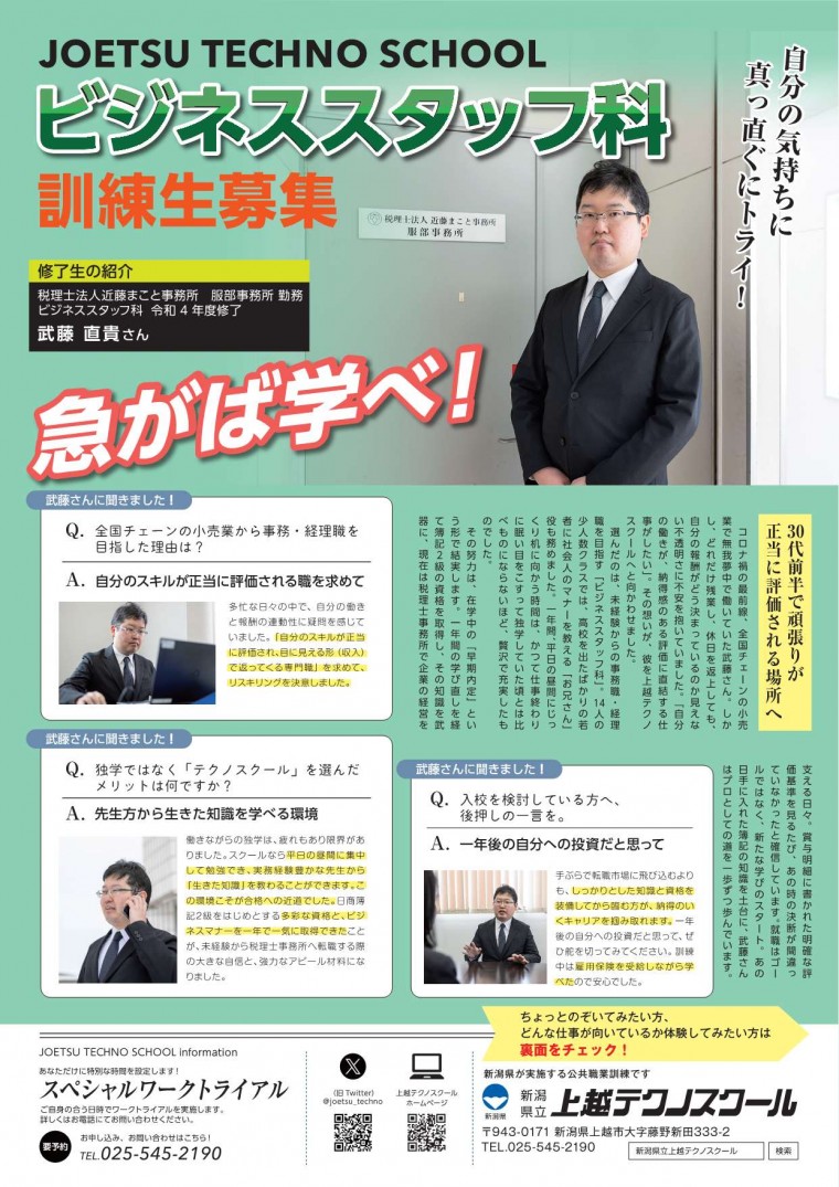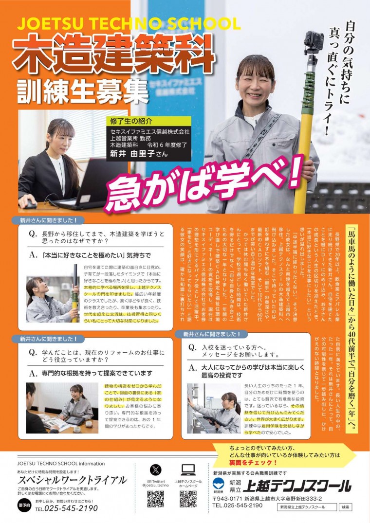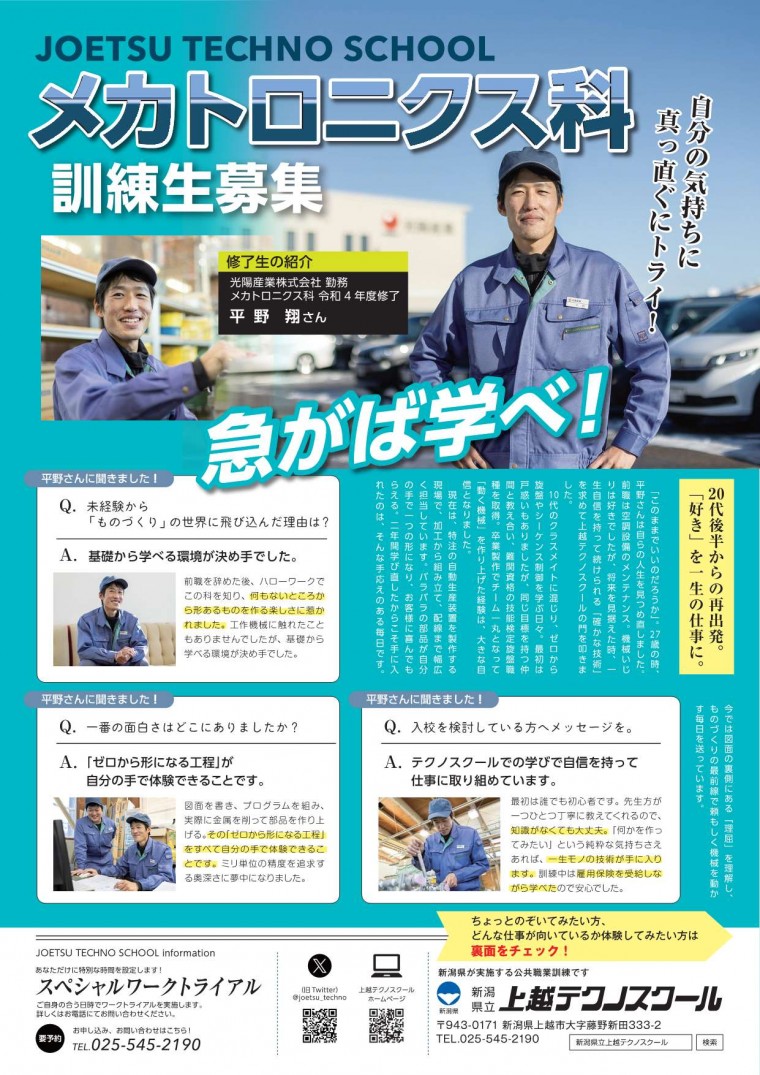 上越テクノスクール > 4月開講コースの募集チラシを公開します!