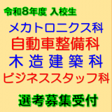 - 自動車整備科、ビジネススタッフ科、メカトロニクス科 など
