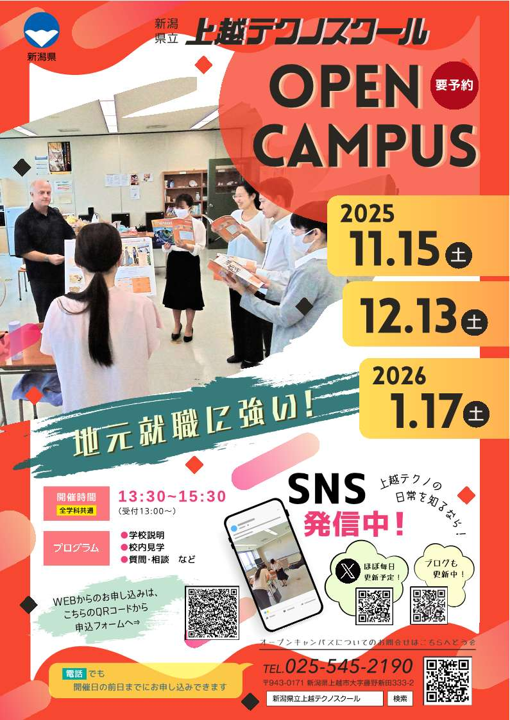 上越テクノスクール > オープンキャンパスを開催します【令和7年11月~1月】