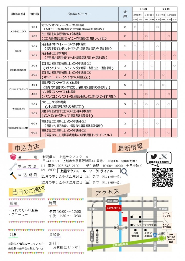 上越テクノスクール > 【11月~12月ワークトライアル】6職種12体験にチャレンジ