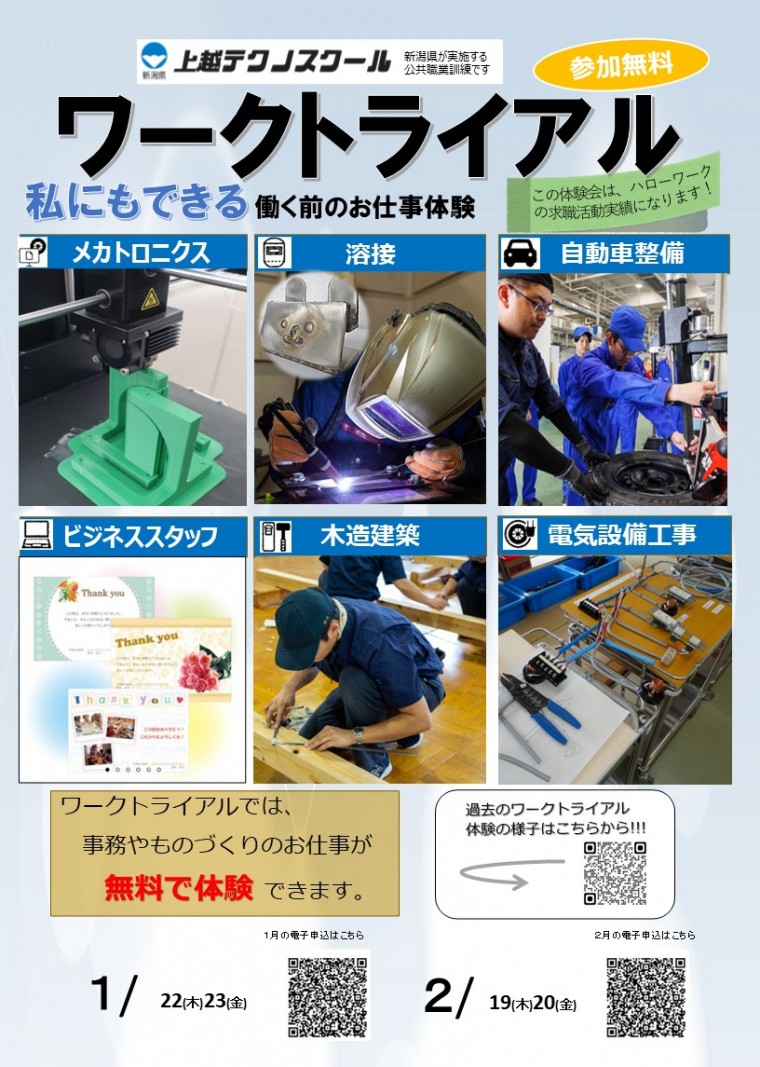 上越テクノスクール > 【1月~2月ワークトライアル】6職種12体験にチャレンジ